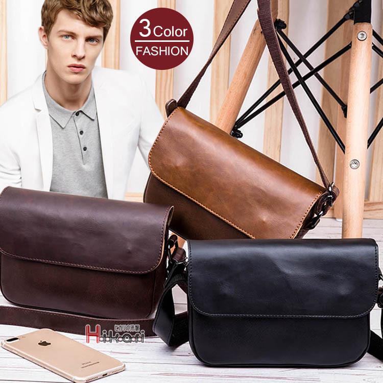 ショルダーバッグ メンズ レザー 合皮 小さめ 斜めがけ 軽い シンプル 614 Men Trouver