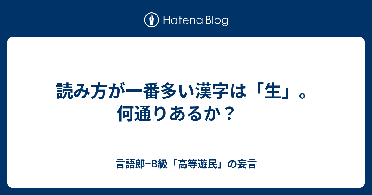 読み方が一番多い漢字は 生 何通りあるか 言語郎 B級 高等遊民 の妄言