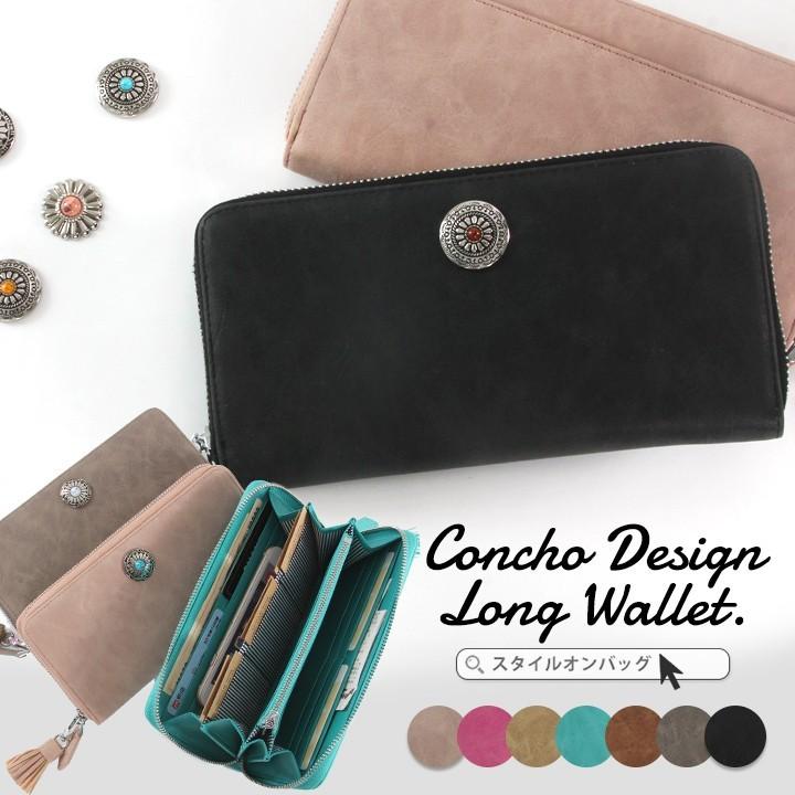 長財布 レディース 財布 多機能 多収納 オリジナル 財布 ウエスタン コンチョ ボタン ラウンドファスナー カード収納 小銭入れ かわいい レディース財布 スタイルオンバッグ 通販 Paypayモール