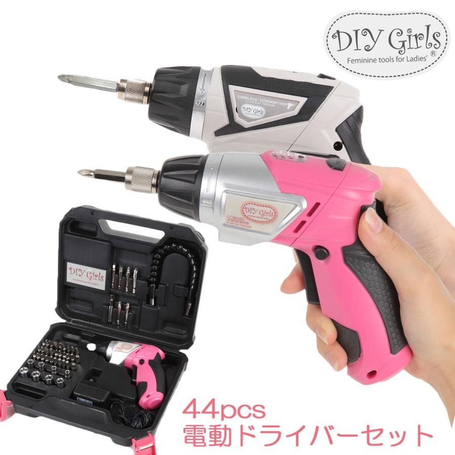 Diy Girls 超カワ 女性専用 充電式 小型 電動ドライバー セット 安全設計 コンパクト 44pcsのパーツ ビットセット 初心者 Dg1057 すらい堂 通販 Yahoo ショッピング